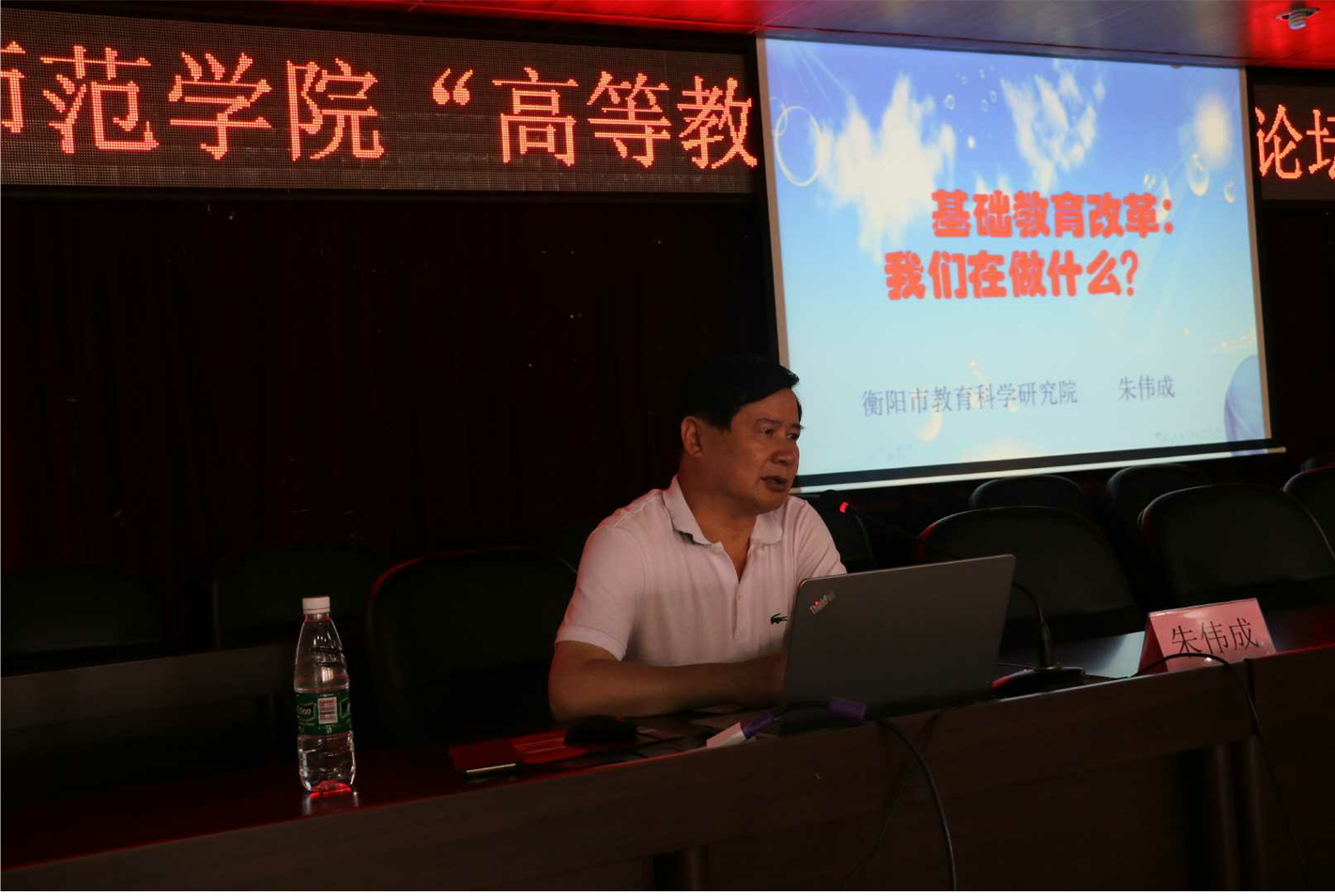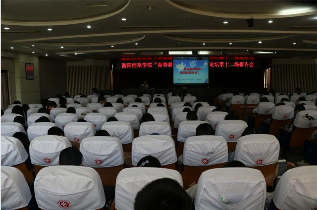 5月18日上午,我校“高等教育——基础教育”论坛第十二场学术报告会在学术交流中心六楼报告厅举行。衡阳市教育科学研究院院长朱伟成作题为“基础教育改革,我们在做什么”的学术报告,副校长张登玉教授主持报告会。