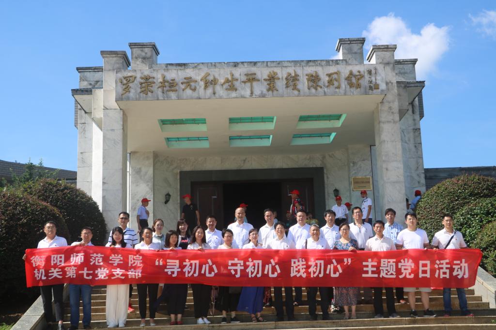 2020年6月28日,为隆重纪念中国共产党成立99周年,深入学习贯彻习近平新时代中国特色社会主义思想、党的十九大和十九届二中、三中、四中全会精神,引导激励支部党员增强“四个意识”、坚定“四个自信”、做到“两个维护”,始终不忘初心、牢记使命、奋发有为,机关党总支第七党支部组织全体党员赴“全民国防教育基地”、“爱国主义教育示范基地”--衡东县罗荣恒元帅故居及纪念馆参观学习,开展“寻初心、守初心、践初心”主题党日活动。党委委员张登玉副校长全程参加并给予指导。